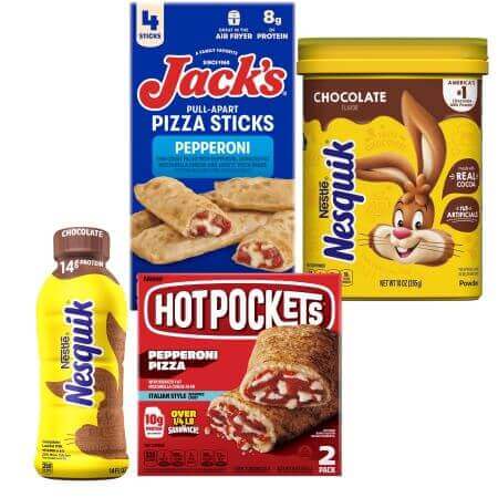 When you buy THREE (3) Hot Pockets® 2pks, Jack’s® Pizza Sticks, Nesquik® Low Fat Milk 14oz or small Nesquik® Powder (expires 1.29.25)